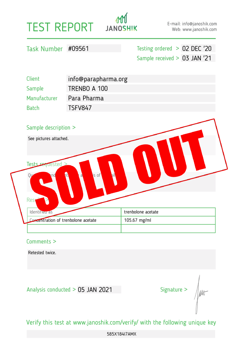 Substance | Trenbolone Acetate 100mg/ml |